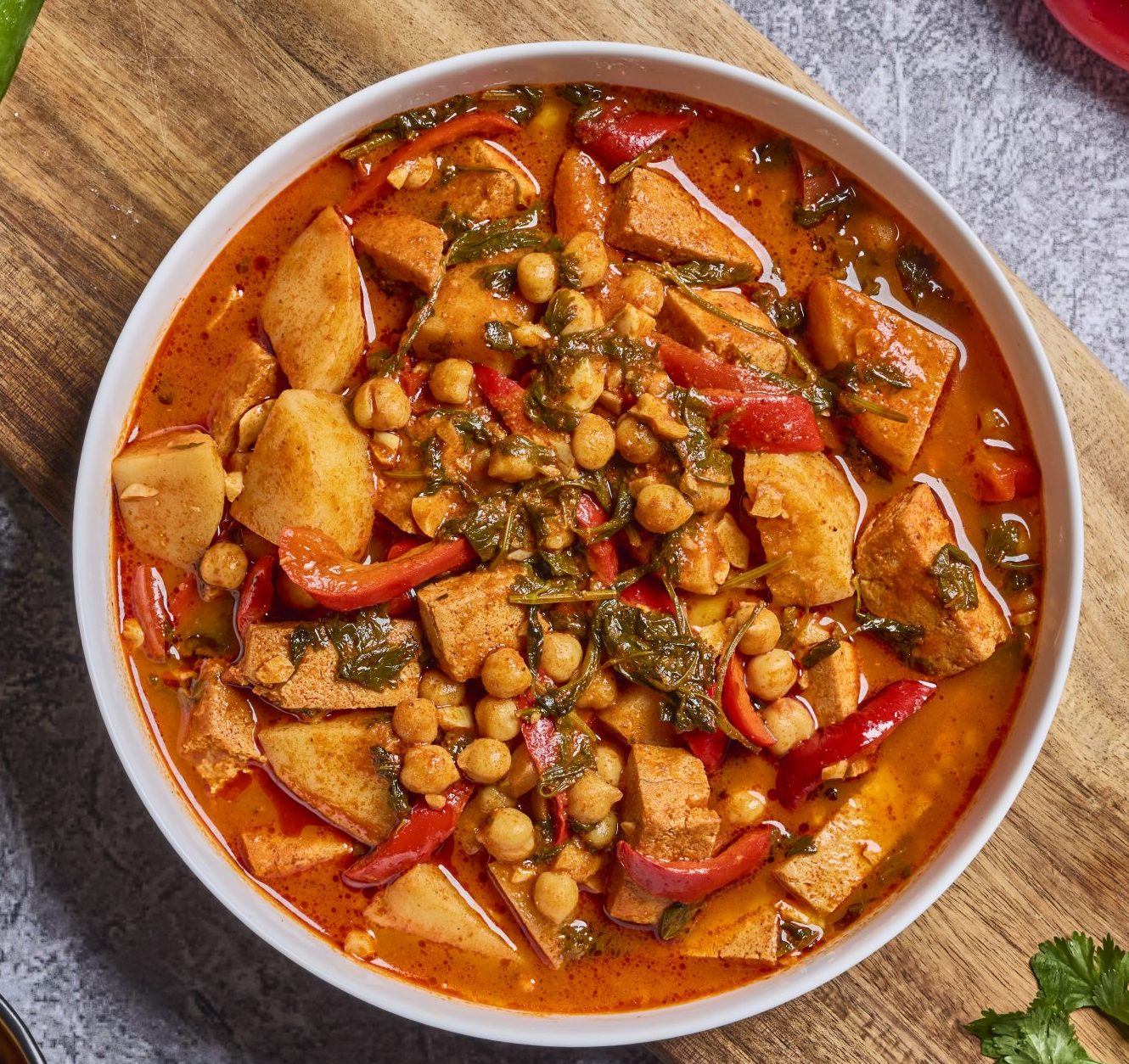 טופו , תפ"א , גמבה , גרגירי חומוס, כוסברה.